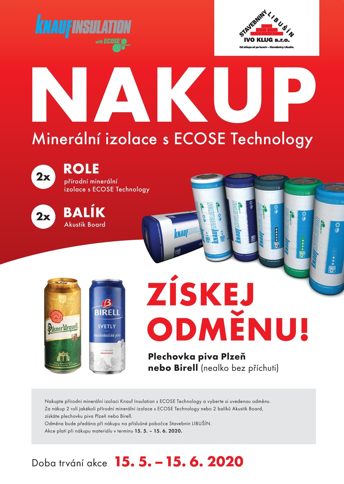Za nákup 2 rolí jakékoli přírodní minerální izolace s ECOSE Technology nebo 2 balíků Akustik Board, získáte plechovku piva Plzeň nebo Birell.